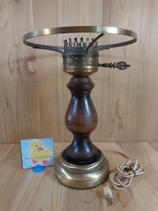 Vintage Electric Hurricane Lamp Dark Brown Wood Brass 14 Mid Century Modern Ebay