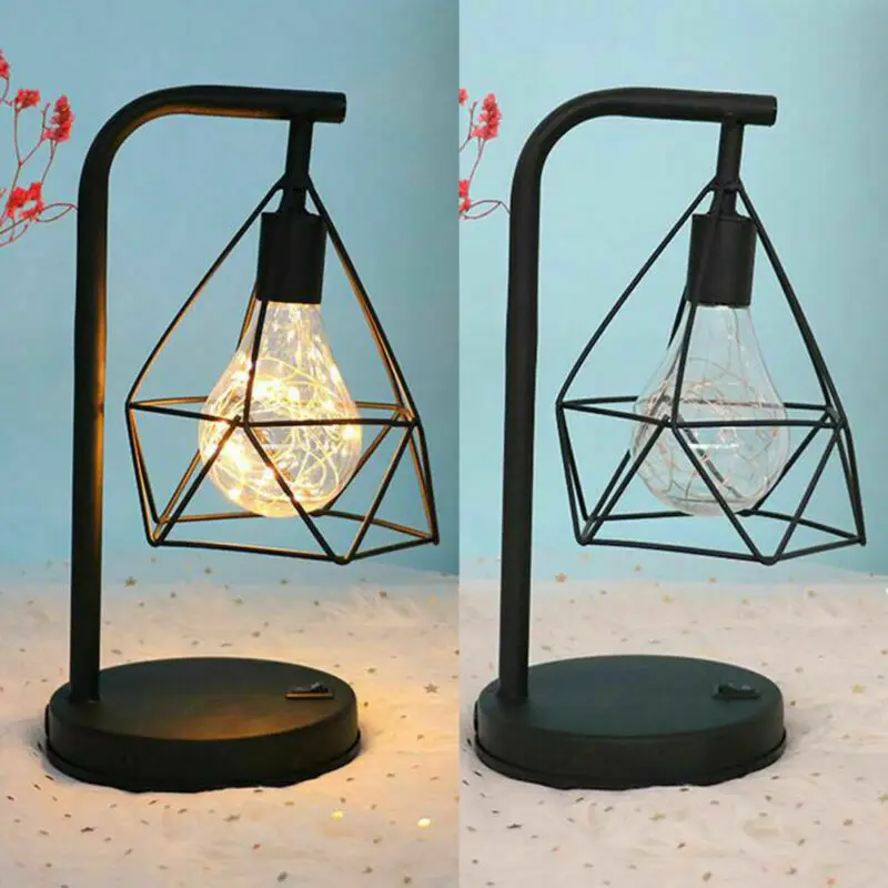 Led Table Lamps Retro Black Geometric Wire Industrial Led Light Bulb Table Lamps Bed Side Battery Table Lamp Glow Party Supplies Aliexpress