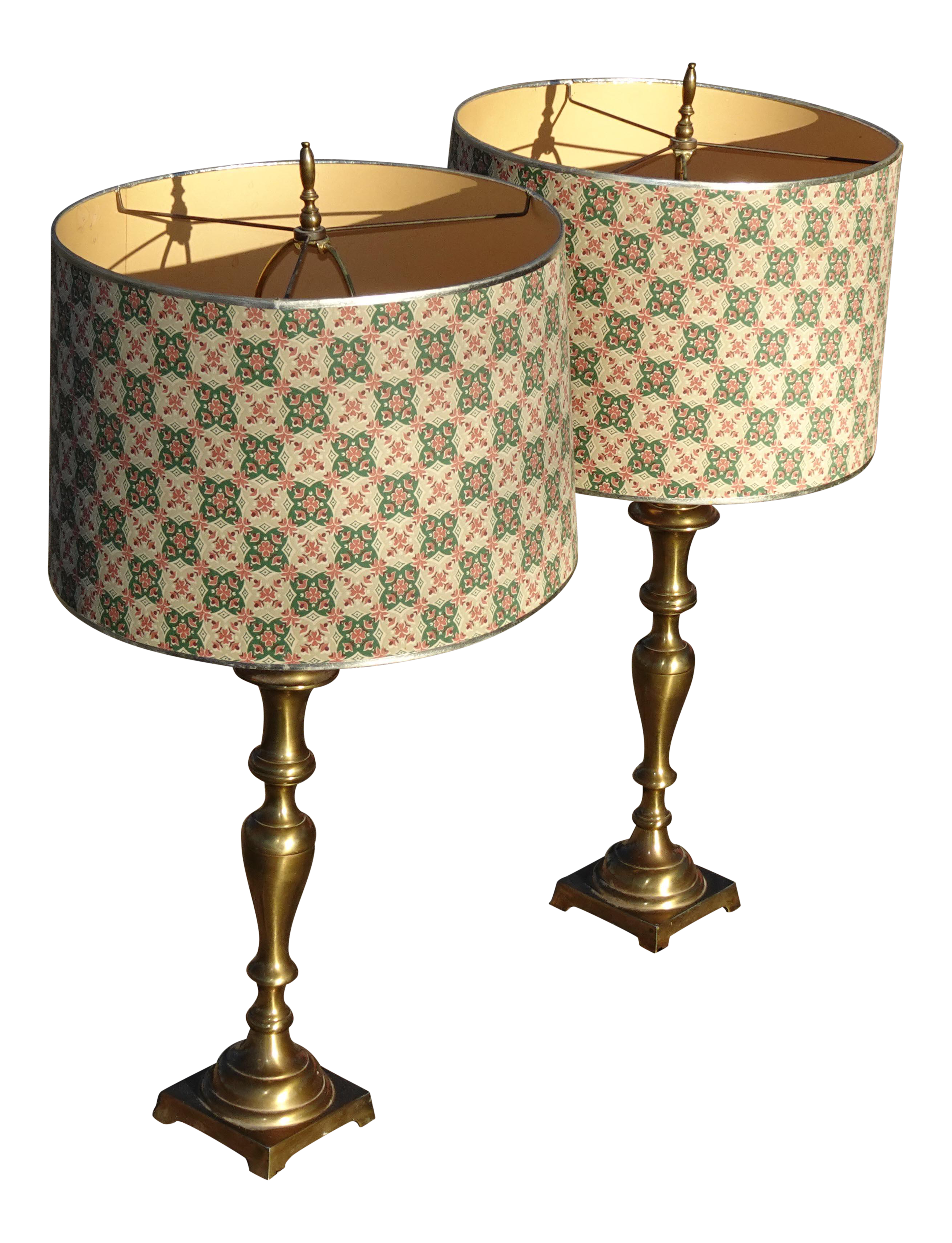 Mid Century Modern Gold Table Lamps W Unique Green Orange Lamp Shades A Pair Chairish