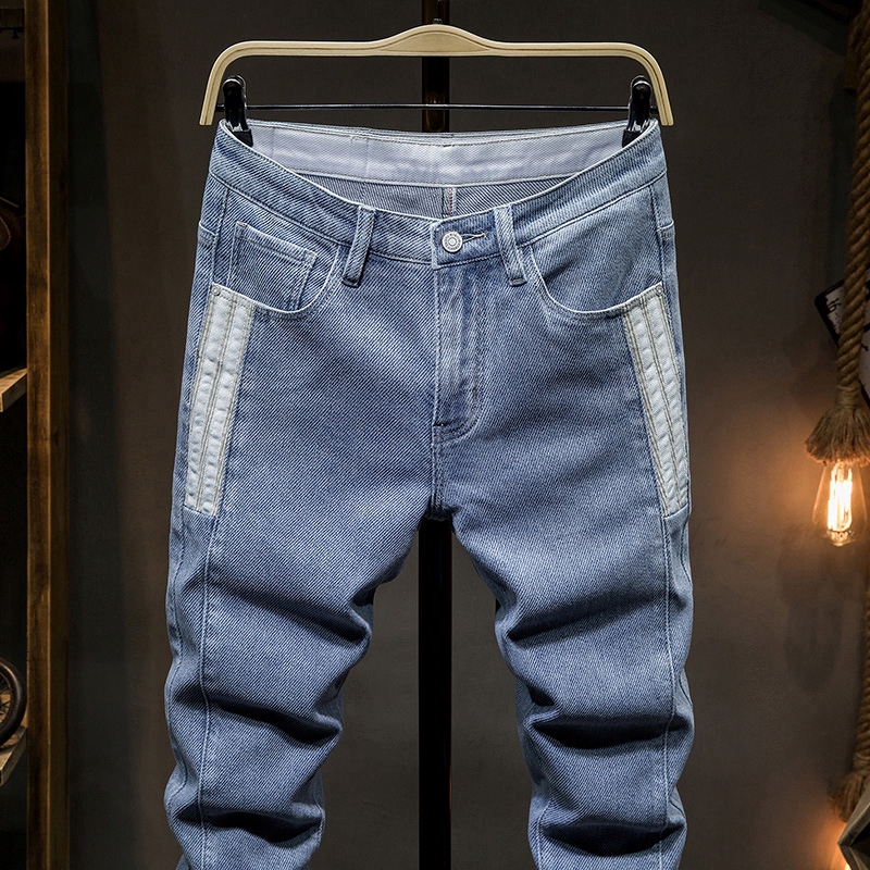 Slim Fit Men S Fashion Jeans Light Blue Dark Blue Shopee Indonesia
