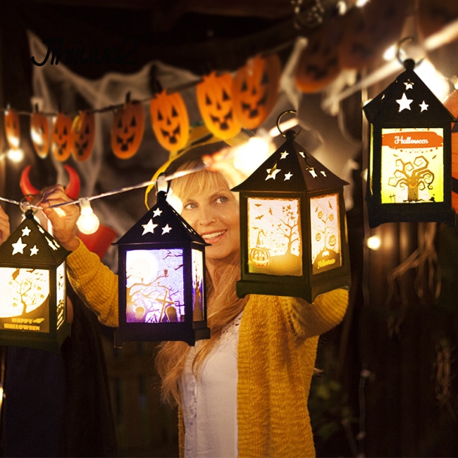 Vintage Colorful Hanging Lantern Hollow Out Flame Lamp Night Light Decor For Halloween Bar Decor Shopee Indonesia